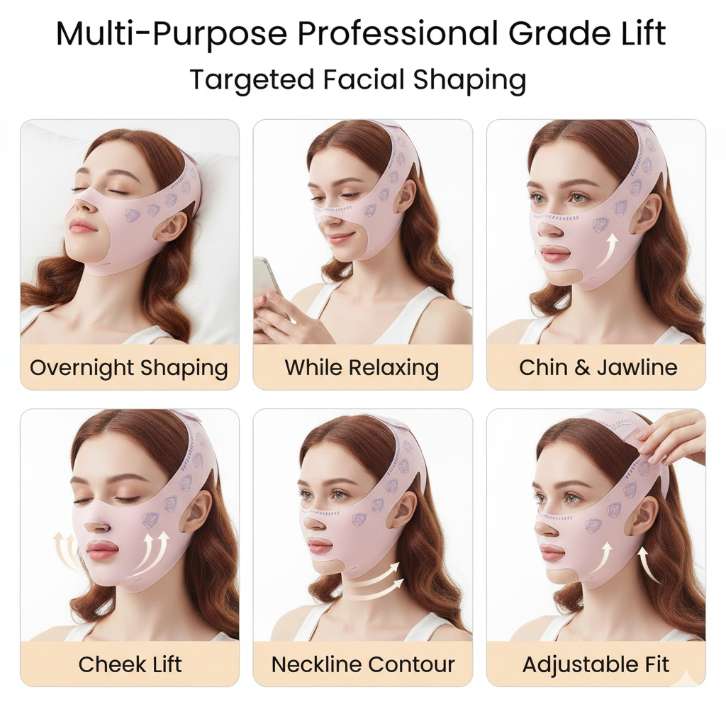 As someone who clenches my jaw, I wanted something that supports the masseter area at night, and this band does exactly that. I wake up looking less puffy, and the double-chin shadow is noticeably softer in photos. The fabric is stretchy but secure, so it doesnβt slip even when I roll over. I also appreciate that it smooths my lower face so my contour takes half the time.